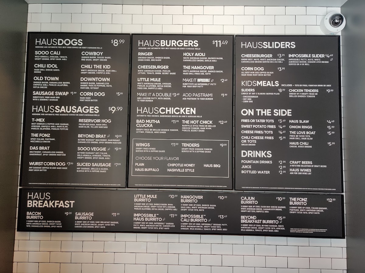 Introducing the menu at Dog Haus Biergarten - Berkeley, where the humble hot dog is elevated to an art form. Nestled in the heart of Berkeley, this eatery features innovative Haus Dogs crafted from Creekstone Farms’ premium Angus beef—hormone and antibiotic-free. Take a bite of the Sooo Cali, complete with wild arugula and spicy basil aioli, or indulge in the Downtown with its smoky bacon and caramelized onions, all served on warm King's Hawaiian rolls.
